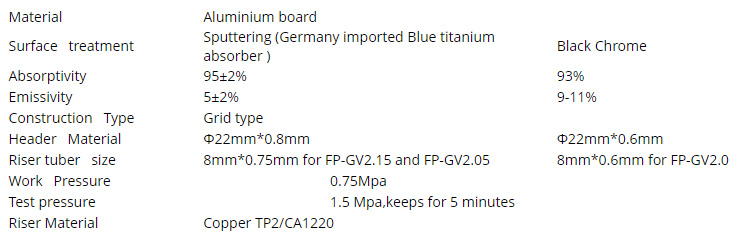 Solar Collector Specifications